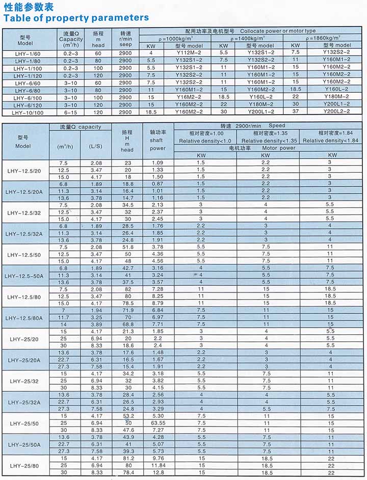 概述: 硫磺制酸是我國硫酸工業(yè)的重要發(fā)展方向之一,小流量、高揚程的液硫泵是硫磺制酸的關(guān)鍵裝備。為了適應(yīng)這一形勢發(fā)展的需要,在有關(guān)設(shè)計院所、大專院校專家與本公司在吸取國外優(yōu)秀水力泵型的基礎(chǔ)上成功開發(fā)LHY系列立式液硫泵。 LHY系列立式液硫泵適用于各種規(guī)模的硫磺制酸工藝流程中輸送130~158℃的液體硫磺。也適用于其他需要小流量、高揚程的化工流程。LHY系列立式液硫泵由于揚程特高、流量特小、比轉(zhuǎn)速數(shù)特低,已不可能用離心泵的型式來達(dá)到性能要求,用旋渦泵則在運轉(zhuǎn)過程中性能不穩(wěn)定,故采用全新的技術(shù)進(jìn)行水力設(shè)計,具有普通離心泵,旋渦泵所不具備的特殊優(yōu)點。該系列泵流量在很大范圍內(nèi)變化時,泵的揚程始終保持不變。這一特點特別適合于要求泵具有自調(diào)特性的化工流程。 LHY系列立式液硫泵結(jié)構(gòu)簡單、維修方便、運行平穩(wěn)、性能穩(wěn)定。 本系列泵在輸送液體硫磺時,采用1C r1 8Ni9Tl材料制造,當(dāng)使用于其它化工流程時,可用下述材料制造: 304(0Cr18Ni9)316(0Cr18N112Mo2)1Cr18Ni12Mo2Ti316(00Cr18Ni12Mo2)CW-2(CD4MCu)J-1(UB-6)20Cb3。 性能范圍:流量:0.2~10m3/h 揚程:40~120m 轉(zhuǎn)速:2900r/min 適用溫度范圍:t≤20℃。如采用特殊的制造技術(shù),適用溫度可提高到550℃。 泵的型號意義說明 HYL-系列代號 1-泵的流量(m3/h) 80-泵的揚程(m)