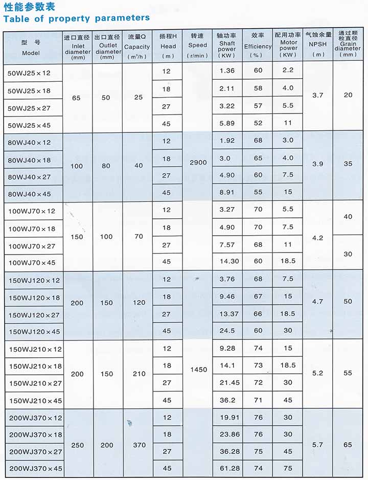 概述: WJ型漿泵是采用無(wú)堵塞泵的原理,開(kāi)發(fā)的新一代漿泵系列產(chǎn)品,該泵采用國(guó)外先進(jìn)的雙流道式葉輪、各種纖維,顆粒通過(guò)性能好,具有無(wú)堵塞、輸漿濃度范圍廣等特點(diǎn)??赏ㄟ^(guò)棉漿、木漿、各種顆粒、污水垃圾等。與ZBJ型紙漿泵相比,使用壽命長(zhǎng),節(jié)能效果顯著,效率可提高10-15%,如過(guò)流部分采用ZG1Cr18N19Ti、ZG1Cr18Ni12Mo2Ti材質(zhì),可適用于輸送200℃以下,含有腐蝕性液體的管道,代替?zhèn)鹘y(tǒng)的襯膠泵。主要用于輸送制漿、造紙、化纖等各種漿料及三廢處理等部門(mén)。濃度可達(dá)2-5%,采用特殊葉輪濃度可達(dá)8%左右。
