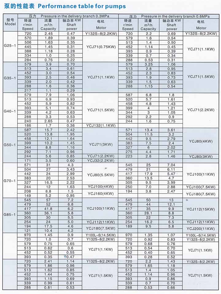 概述: G、GNF型螺桿泵可用于輸送中性或腐蝕性的液體,潔凈的或磨損性的液體,含有氣體或易產(chǎn)生氣泡的液體,高粘度或低粘度液體,包括含有纖維和固體物質(zhì)的液體。主要應(yīng)用于食品業(yè)、紡織業(yè)、造紙業(yè)、石油業(yè)、化工業(yè)、堿、鹽業(yè)、造船業(yè)、建筑業(yè)、核工業(yè)、冶金與礦山等行業(yè)。 工作原理: 單螺桿泵是-種內(nèi)嚙合的密閉式螺桿泵,屬轉(zhuǎn)子式容積泵。主要工作部件由具有雙頭螺旋空腔的定子和在定子孔內(nèi)與其嚙合的單頭螺旋螺桿--轉(zhuǎn)子組成。當(dāng)輸入軸通過萬向節(jié)驅(qū)動轉(zhuǎn)子繞定子作行星回轉(zhuǎn)時,定子--轉(zhuǎn)子付就連續(xù)地嚙合形成密閉腔,這些密閉腔容積不變地作勻速軸向轉(zhuǎn)動,把輸送介質(zhì)從吸入端經(jīng)流過定子--轉(zhuǎn)子付輸送至壓出端,吸入密閉腔內(nèi)的介質(zhì)流過定子而不被攪動和破壞。因此,可以輸送含有堅硬磨損性雜質(zhì)及固體顆粒的介質(zhì)和粘稠的液體。